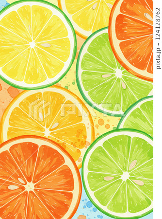 いろいろなグレープフルーツの手描きイラスト/ワイド