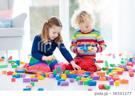 Kids play with toy blocks. Toys for children.