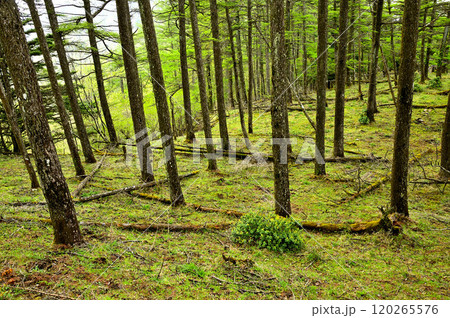 丹沢の八丁坂ノ頭 新緑のカラマツ林