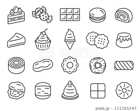 スイーツのアイコン(線画)のイラストセット