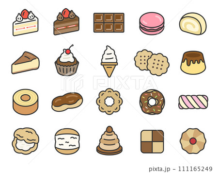 スイーツのアイコン(線画カラー)のイラストセット