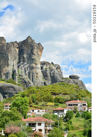 世界遺産の街並み・ギリシャ・メテオラー・カランバカの街からの奇岩