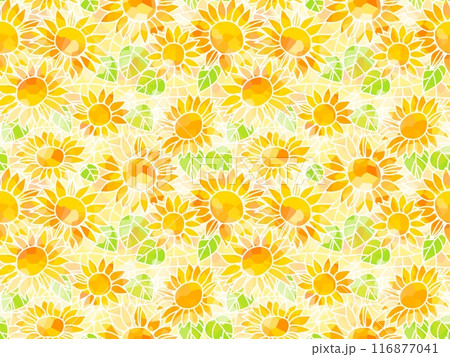 ヒマワリのステンドグラスのシームレスパターン D-2'