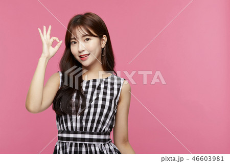 女性 ポートレートシリーズ カラーバック ハンドサイン