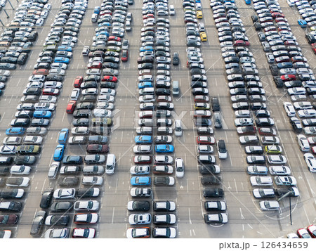 Aerial view of a storage facility for new cars