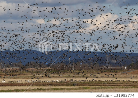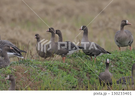伊豆沼・休耕田で採餌するシジュウカラガン
