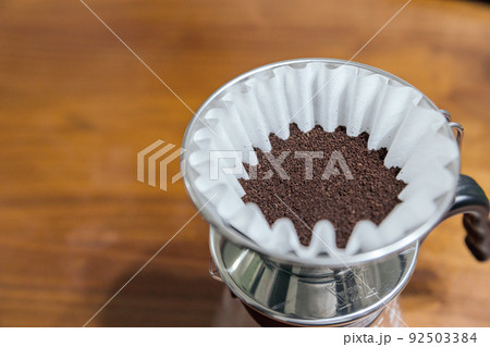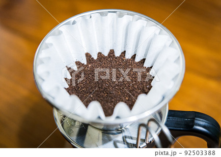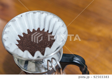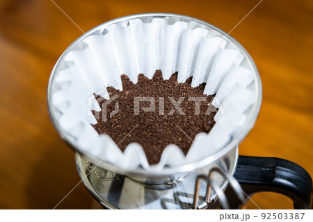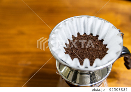 コーヒーフィルターと細挽きのコーヒー豆