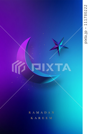 The crescent moon shines over a mosque, with a star nearby, creating a serene Ramadan atmosphere