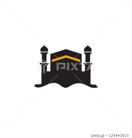 Illustration of Golden Islamic Mosque Exterior Building Landscape in Middle East