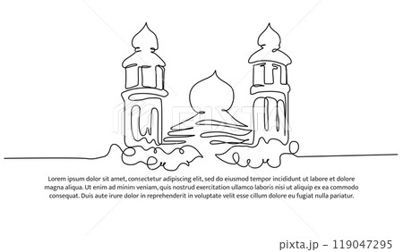 Mosque continuous line design. Islamic architectural design concept. Celebration of Ramadan, Eid al-Fitr Eid al-Adha and Islamic New Year. Decorative elements drawn on a white background.