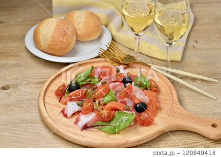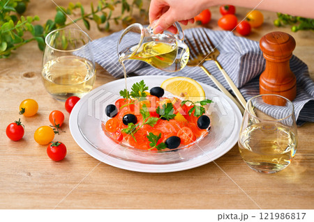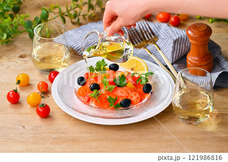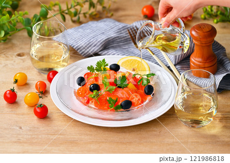 サーモンのカルパッチョ、カルパッチョサラダ、サーモンとミニトマトのカルパッチョ、イタリアン