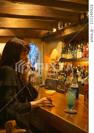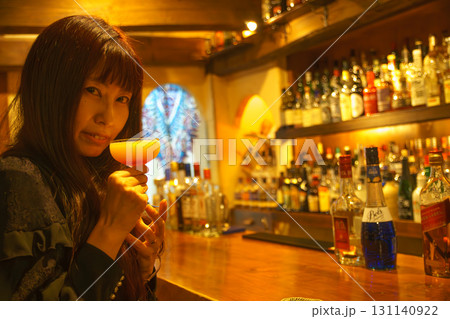 オーセンティックバーでお酒を味わうカップルのカクテル