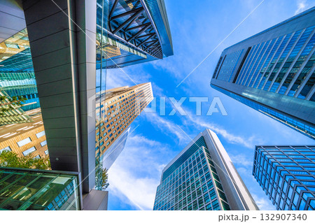 日本の東京都市景観11月4日。汐留のビジネス街を望む