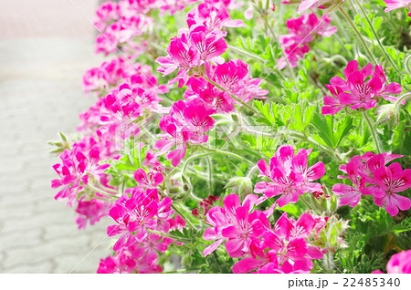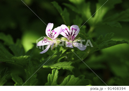 ピンク色のローズゼラニウムの花 背景ぼかし