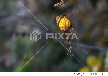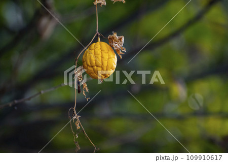 つる性で黄色の果実を持って雌雄同株の生薬としても利用されるキカラスウリ