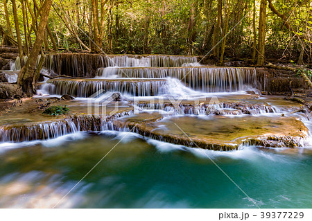 Landscape photo, Erawan Waterfall, beautiful waterfall in rainforest at Kanchanaburi province, Thailand