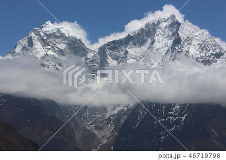 ネパールのペリチェ村からのカンテガとタムセルク