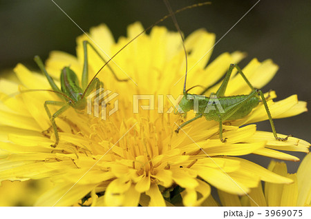 タンポポとヤブキリ