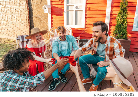 Friends have a picnic outdoor in a sunny day