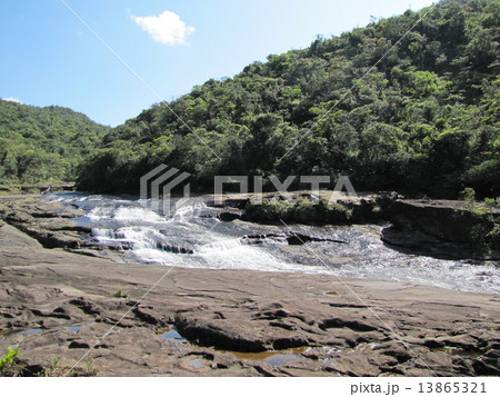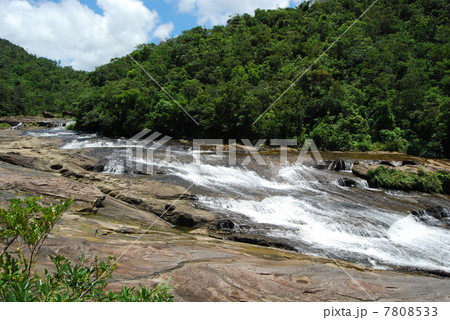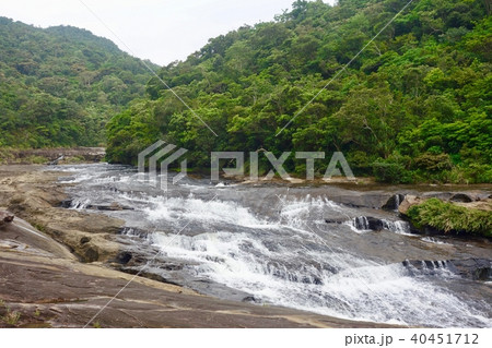 西表島浦内川の階段状に流れるカンピレーの滝の風景