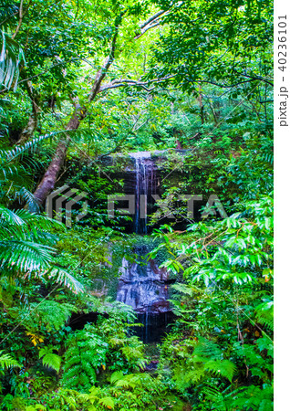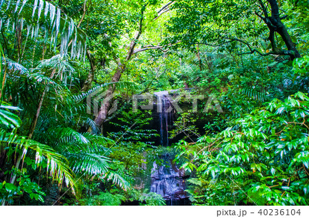 西表島浦内川上流のカンピレーの滝の美しい流れの景色