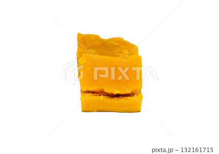 【切り抜き透過背景素材】煮くずれ寸前まで塩茹でした角切りのカボチャ