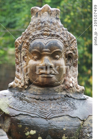 世界遺産アンコールワットは、アンコールトムのナーガの石像