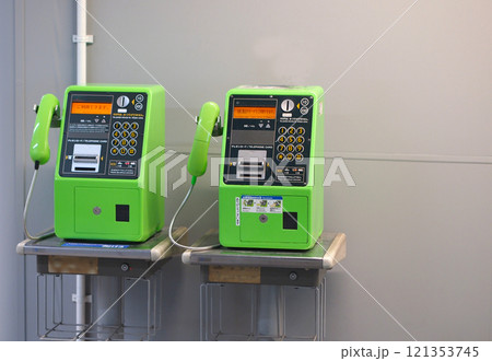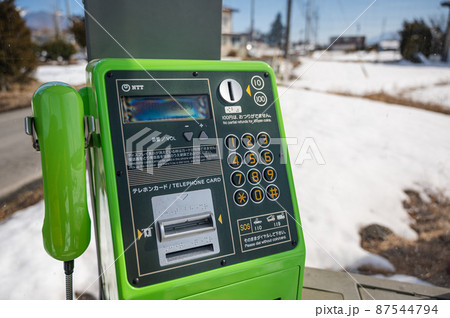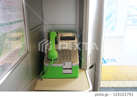 公衆電話ボックスの緑電話