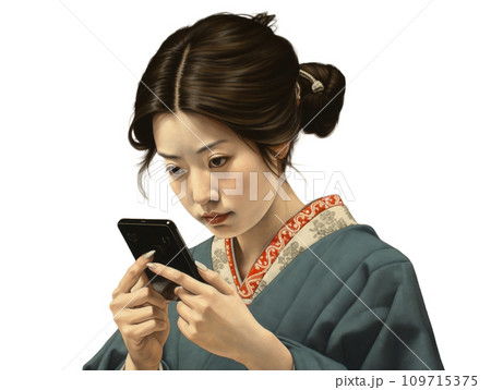 スマホを見る着物の女性 イラスト