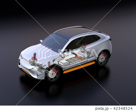 駆動部、バッテリーパックなどの部品が見える電動SUVのイメージ