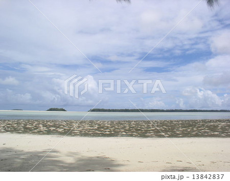 パラオ・カープ島の砂浜と斜めに傾いた樹木