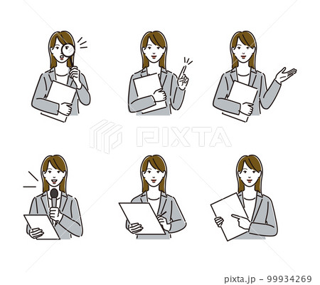 書類を持った女性ビジネスパーソンのよくあるポーズのセット