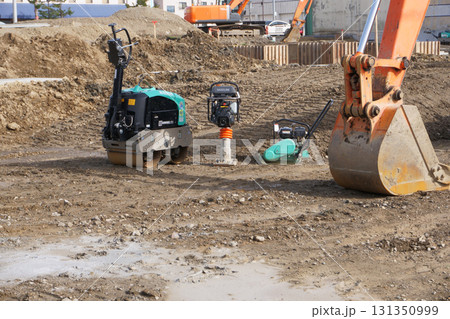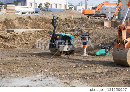 建築工事現場の地面締固め機