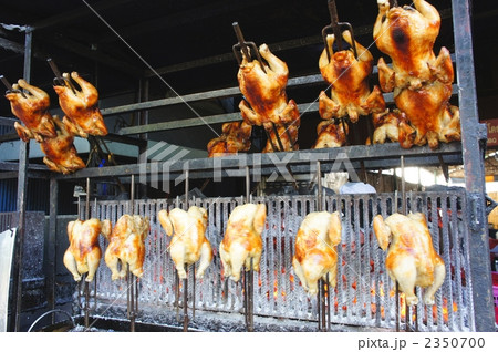 バンコクの屋台で焼かれている鶏