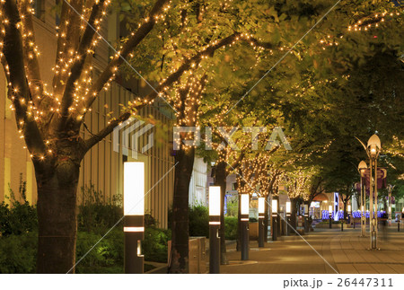 日本の横浜都市景観 馬車道のガス灯などを望む