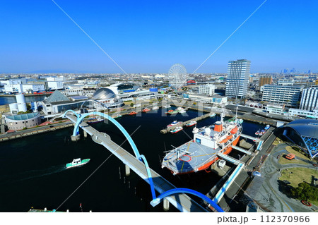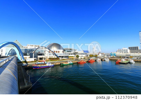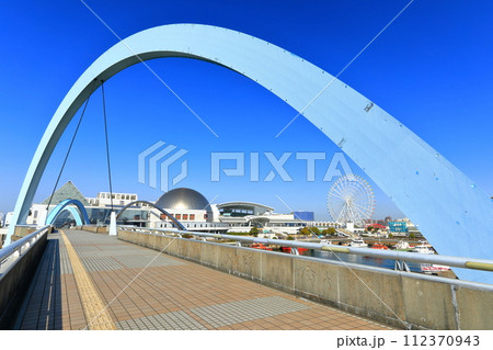 【愛知県】快晴の名古屋港水族館とポートブリッジ(ガーデンふ頭臨港緑園)