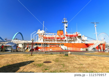 【愛知県】快晴の名古屋港の南極観測船ふじ(ガーデンふ頭臨港緑園)