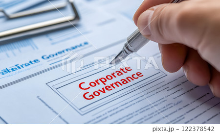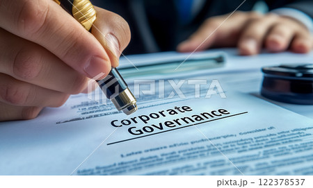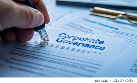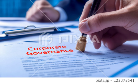 コーポレートガバナンスの書類に捺印するビジネスマン