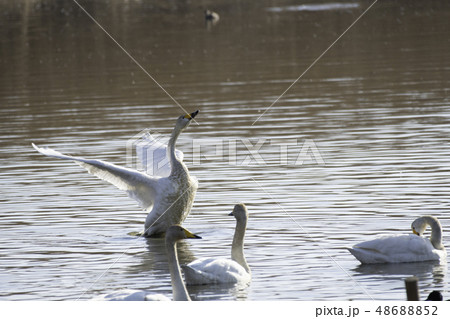 コハクチョウの羽ばたき 群馬県館林市ガバ沼