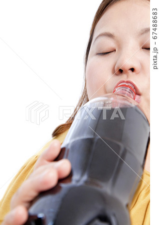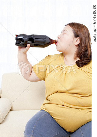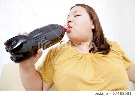 コーラを飲むメタボ女性