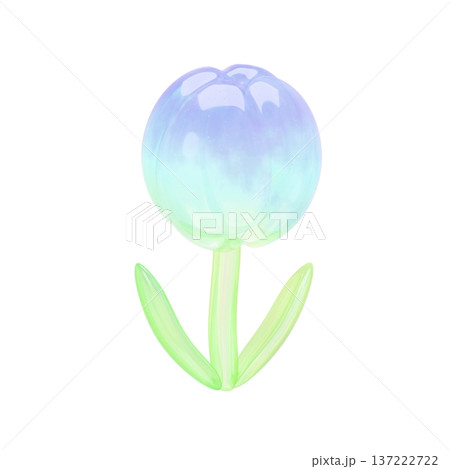 ゆめかわいい3Dガラスチューリップ パステルブルー透明感ぷっくり花茎付き装飾素材