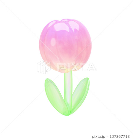 ゆめかわいい3Dガラスチューリップ ピンク透明感ぷっくり花茎付き装飾素材