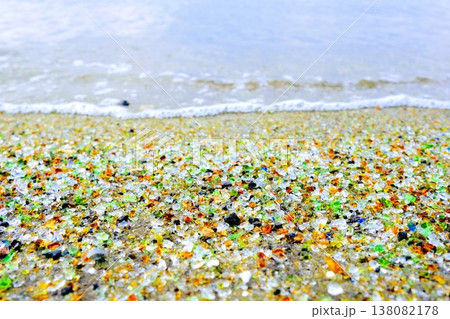 長崎県 ガラスの砂浜の波 背景素材・テクスチャ