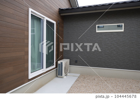 新築イメージ 新築住宅 白枠の掃き出し窓ある庭 庭砂利