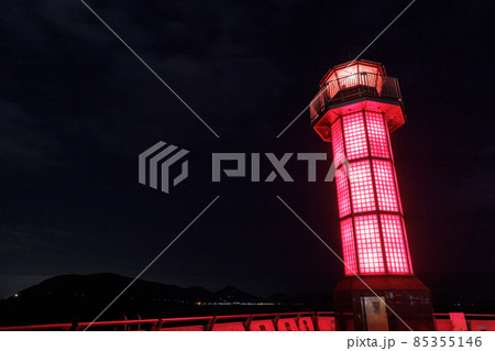夜の高松港玉藻防波堤灯台 せとしるべ