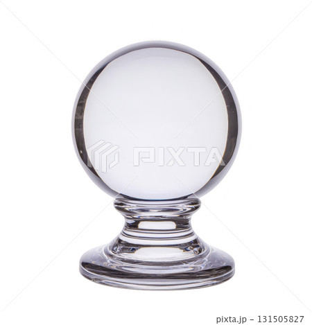 clear glass crystal ball with smooth surface sits on round base, reflecting light and creating mystical ambiance. Perfect for fortune telling or as decorative piece