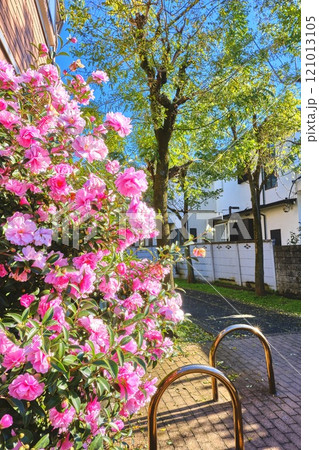 東京都杉並区 サザンカ咲いた井草川遊歩道