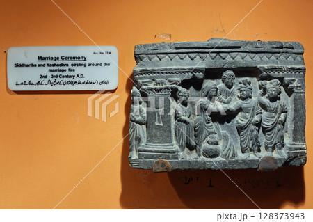 ガンダーラ美術の中心パキスタンのペシャワル博物館に展示されるレリーフ
