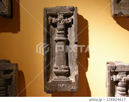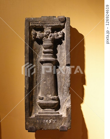 ギリシャ文化の影響を色濃く残すガンダーラの彫刻でインドーペルセポリス様式の柱彫刻