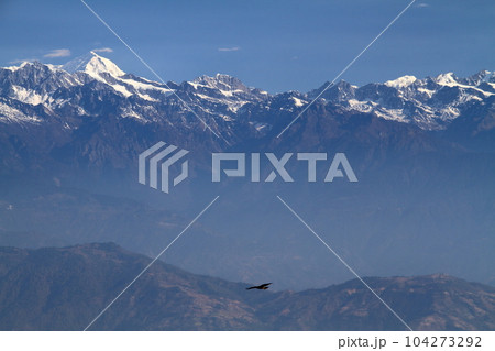 南アジアのネパール カトマンドゥ郊外の村ナガルコットのビュータワー展望台からヒマラヤ山脈の景色